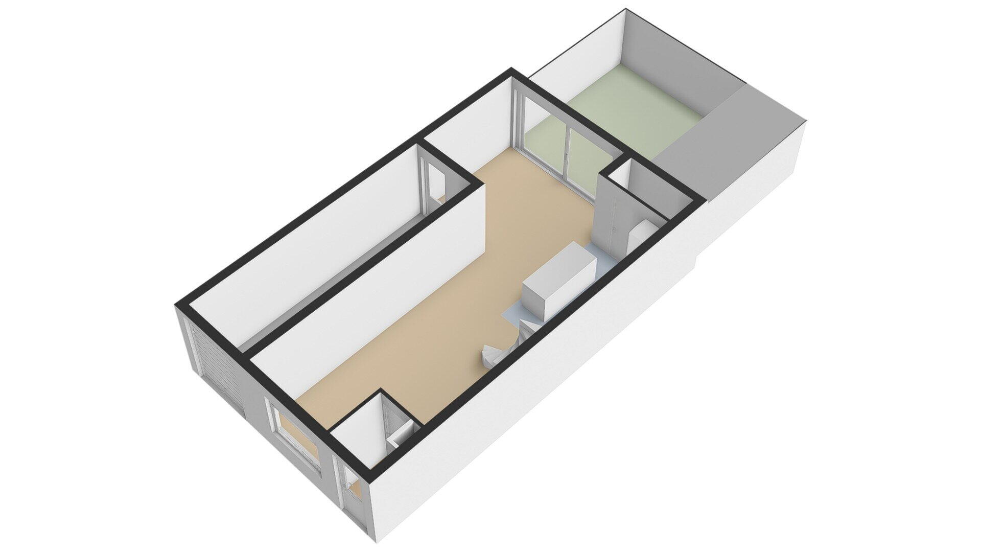 - 25 m² (4.3 meter diep en 5.9 meter breed)